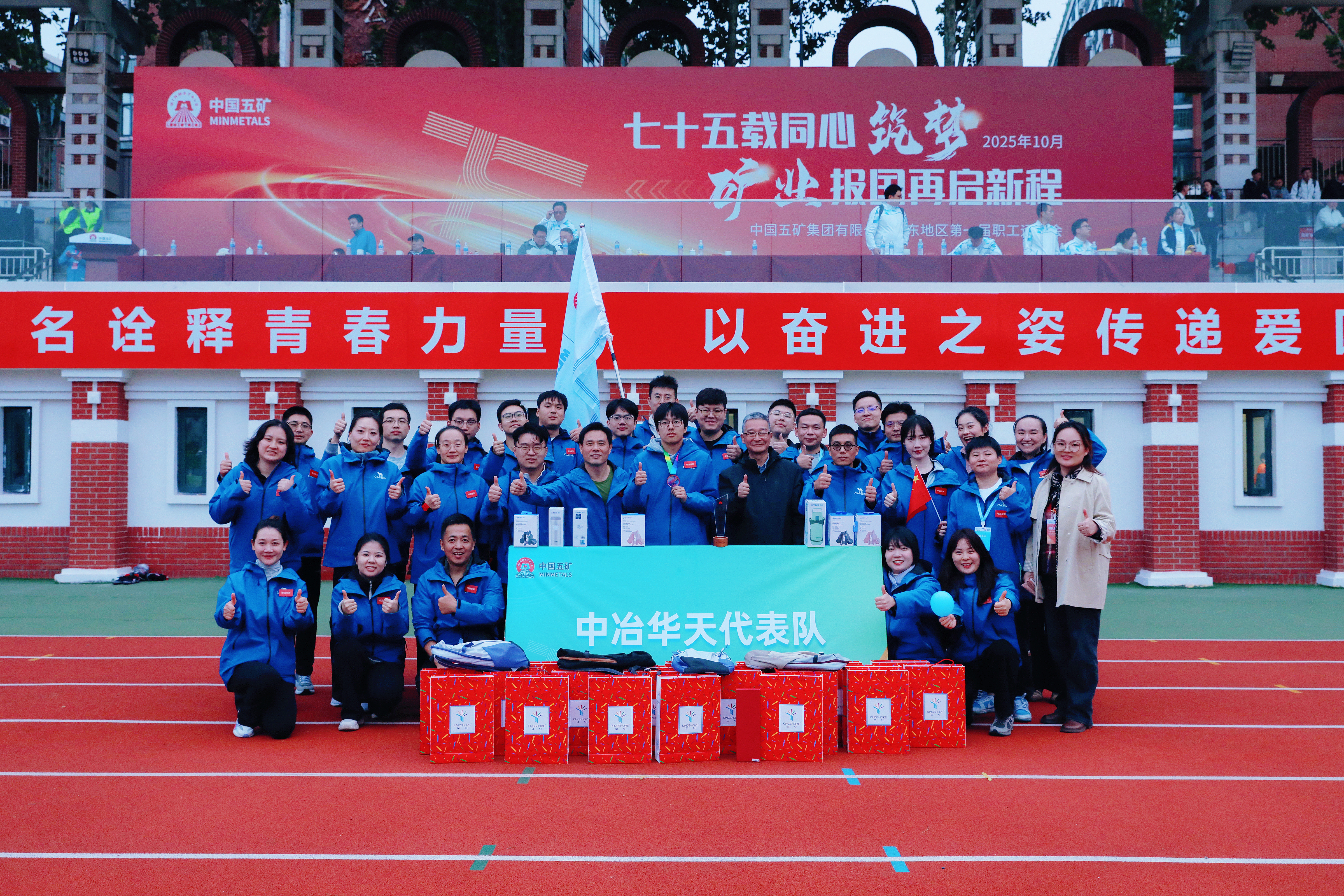 10月25日,中國(guó)五礦華東地區(qū)第一屆職工運(yùn)動(dòng)會(huì)在山東青島開幕,中冶華天代表隊(duì)獲集體項(xiàng)目冠軍1項(xiàng)、個(gè)人項(xiàng)目季軍1項(xiàng),并在12個(gè)項(xiàng)目中躋身前八強(qiáng),以優(yōu)異的成績(jī)展現(xiàn)了華天人“向陽(yáng) 向上”的風(fēng)采。中國(guó)五礦黨組成員、副總經(jīng)理,中國(guó)中冶黨委書記、董事長(zhǎng)陳建光,中國(guó)五礦工會(huì)副主席朱江,以及華東區(qū)域各單位黨政負(fù)責(zé)人、工會(huì)主席、勞動(dòng)模范共同出席開幕式。